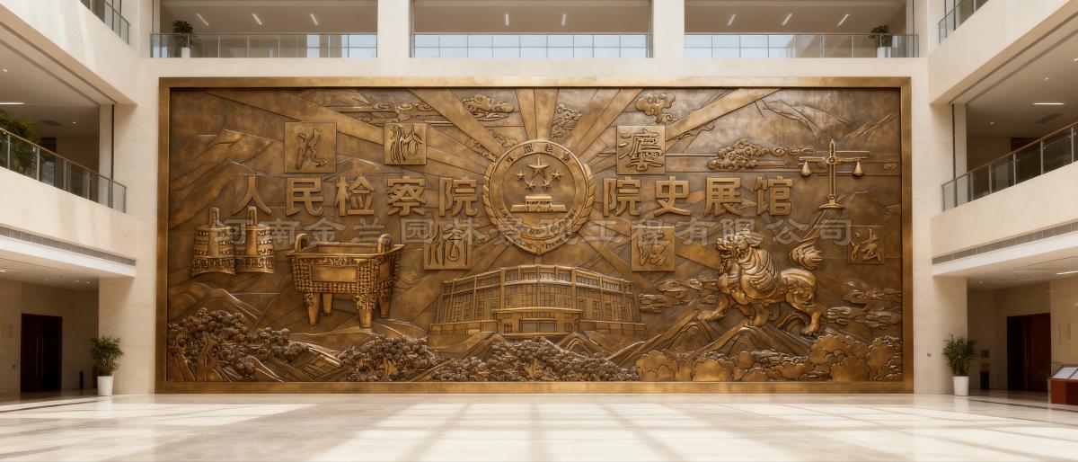 在檢察文化建設的征程中,浮雕不僅是藝術(shù)裝飾,更是法治精神的立體史詩。作為服務全國30+檢察院、擁有16年全產(chǎn)業(yè)鏈經(jīng)驗的金蘭園林景觀,我們以"文化深度解碼+工程精準落地+全生命周期服務"為核心優(yōu)勢,為檢察系統(tǒng)打造從創(chuàng)意設計到永久守護的浮雕建設解決方案。