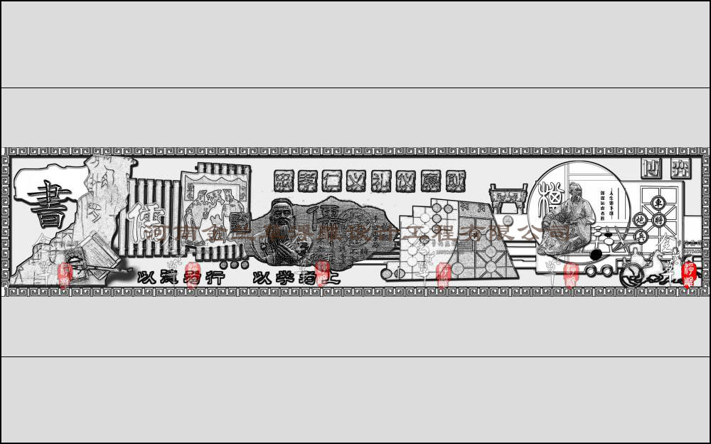 整幅浮雕設計畫面是對中國古典文化的詮釋,在文化元素的表現下表達了對中國古典文化的理解,本學校浮雕設計裝飾性大于故事性。對不同的客戶在校園浮雕需求上各不相同,以上便是金蘭草浮雕設計公司的作品,更多詳情請電話咨詢。