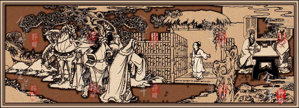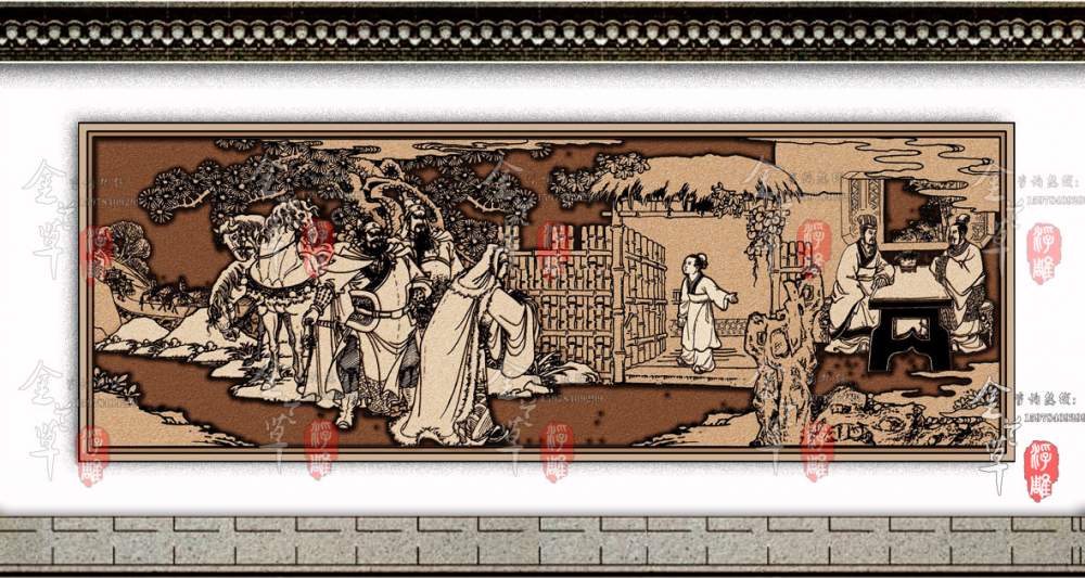 2021年隨著我國(guó)人民生活水平越來越高,對(duì)精神文化的需求也越來越旺盛,2021年必將是文化產(chǎn)業(yè)興旺發(fā)展的一年,浮雕作為文化表現(xiàn)的一種形式,深受文化人群喜歡,特別是歷史故事浮雕,在欣賞故事中的場(chǎng)景的同時(shí),又能起到感悟和教育意義,讀古品今,感嘆歷史,也品味新時(shí)代的生活和學(xué)習(xí)。以下是以三國(guó)演義中的《三顧茅廬》為題材的浮雕設(shè)計(jì),金蘭草浮雕設(shè)計(jì)公司的小編為大家講解浮雕的設(shè)計(jì)思路: