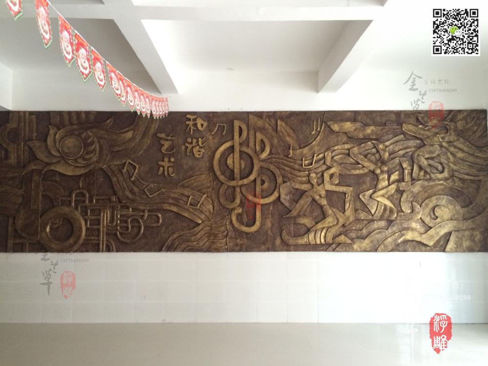 玻璃鋼校園浮雕的后期表現形式豐富,可以根據客戶的各種需求做后期效果處理,常見的玻璃鋼校園浮雕有仿黃銅效果、仿紫銅效果、仿金效果、仿砂巖效果和仿石材效果,玻璃鋼浮雕也可烤漆處理,做各色色彩處理等等,表現形式及其豐富。