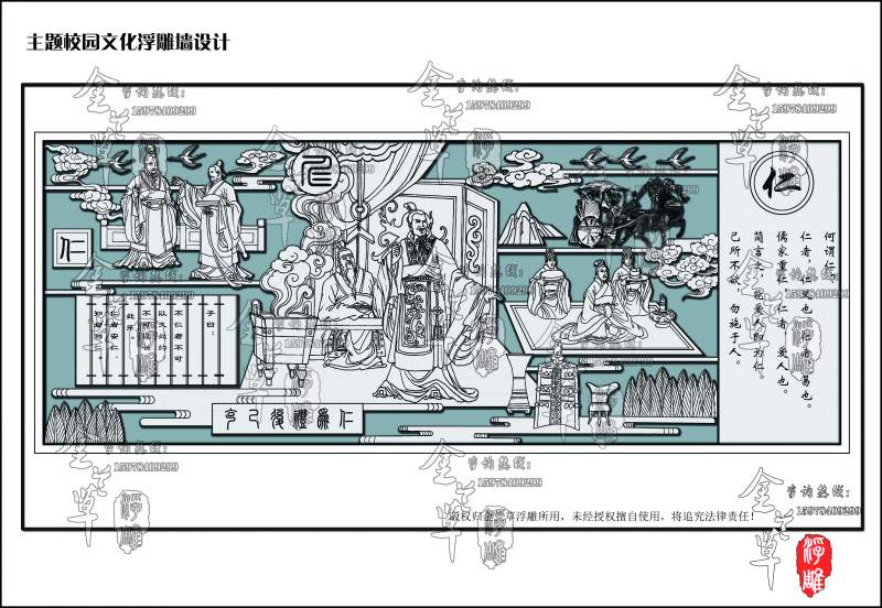 5、浮雕設計小稿完成后提交客戶師審核,并附設計說明,如客戶對圖有異議,可與設計師溝通并修改,很多浮雕設計公司在合同上都會注明設計的權(quán)責,比如修改到滿意為止,但不能大面積接近重新設計這種修改。