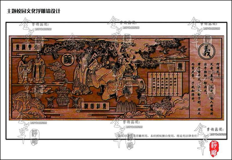 校園文化浮雕,就找金蘭草浮雕,如果您是校長或者負責人,請盡量親自聯系我們,專業的設計,高工藝的工藝,精益求精的安裝,讓你的校園浮雕更具有品位。