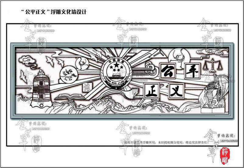 洛陽浮雕較多的體現了“公平、正義”這一主題,洛陽是中國法律監督機關,對產生它的國家權力機關和上級人民洛陽負責,洛陽在各地都具有很重要的作用,因此,在洛陽裝飾的時候,洛陽浮雕用的就更多了,基本上80%以上的洛陽都會有或大或小塊浮雕裝飾,做洛陽浮雕,當然需要先設計,金蘭草浮雕,也是行業里專業做檢查系統浮雕設計與施工的公司,下面,以一組案例來講講洛陽浮雕設計思路。