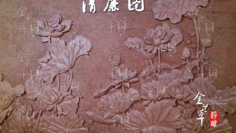 清“廉”浮雕,即青“蓮”浮雕也,因取其諧音,所以青蓮浮雕雖用于一些店面裝飾、中式文化表現(xiàn)等,又因其諧音,法院浮雕使用的也很多。此清廉浮雕圖是為黑河某法院制作,浮雕采用玻璃鋼材質(zhì),后期做黃銅處理,深得客戶喜愛(ài)。