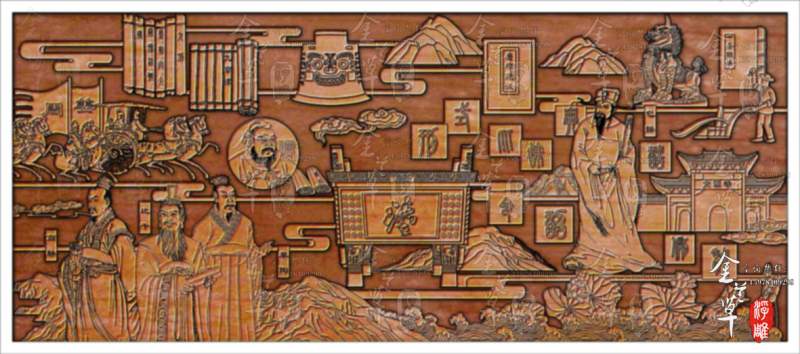 法院銅雕設計以中國古代法文化的發展為思路,對中國古代法文化著作及集大成者進行描述,同時,融入其當地歷史文化元素,體現了中國法制文化的源遠流長。