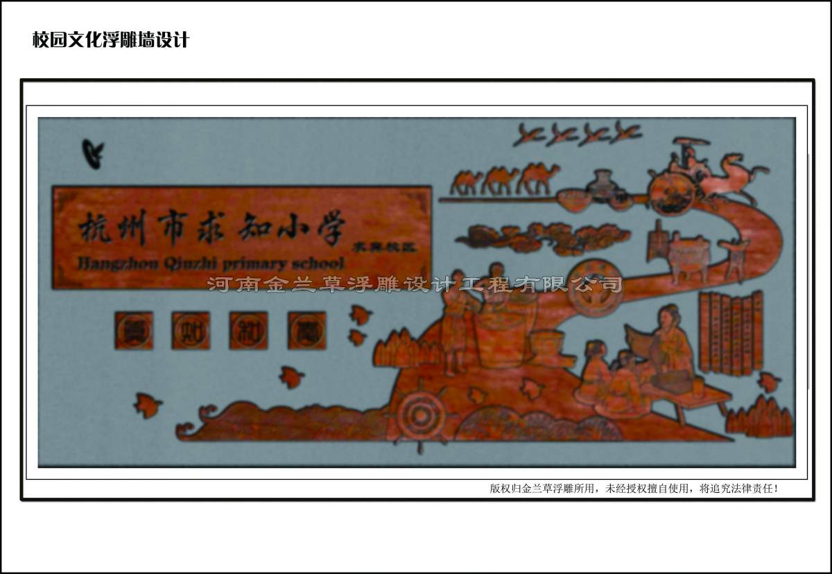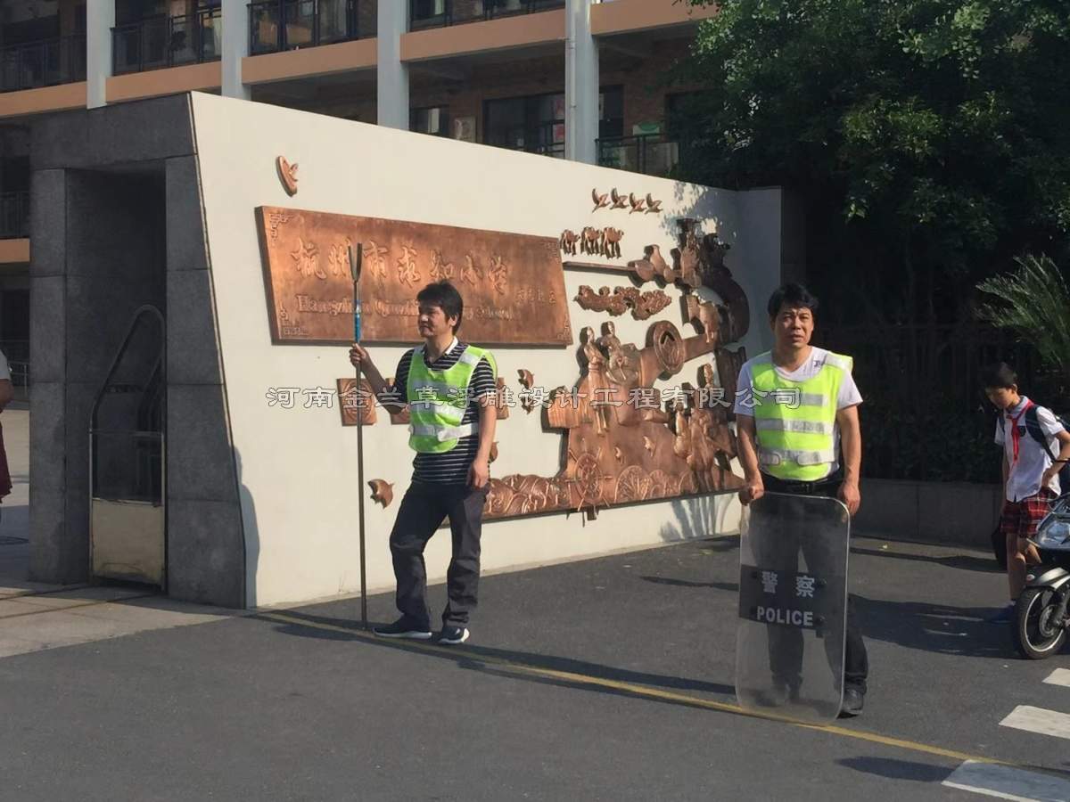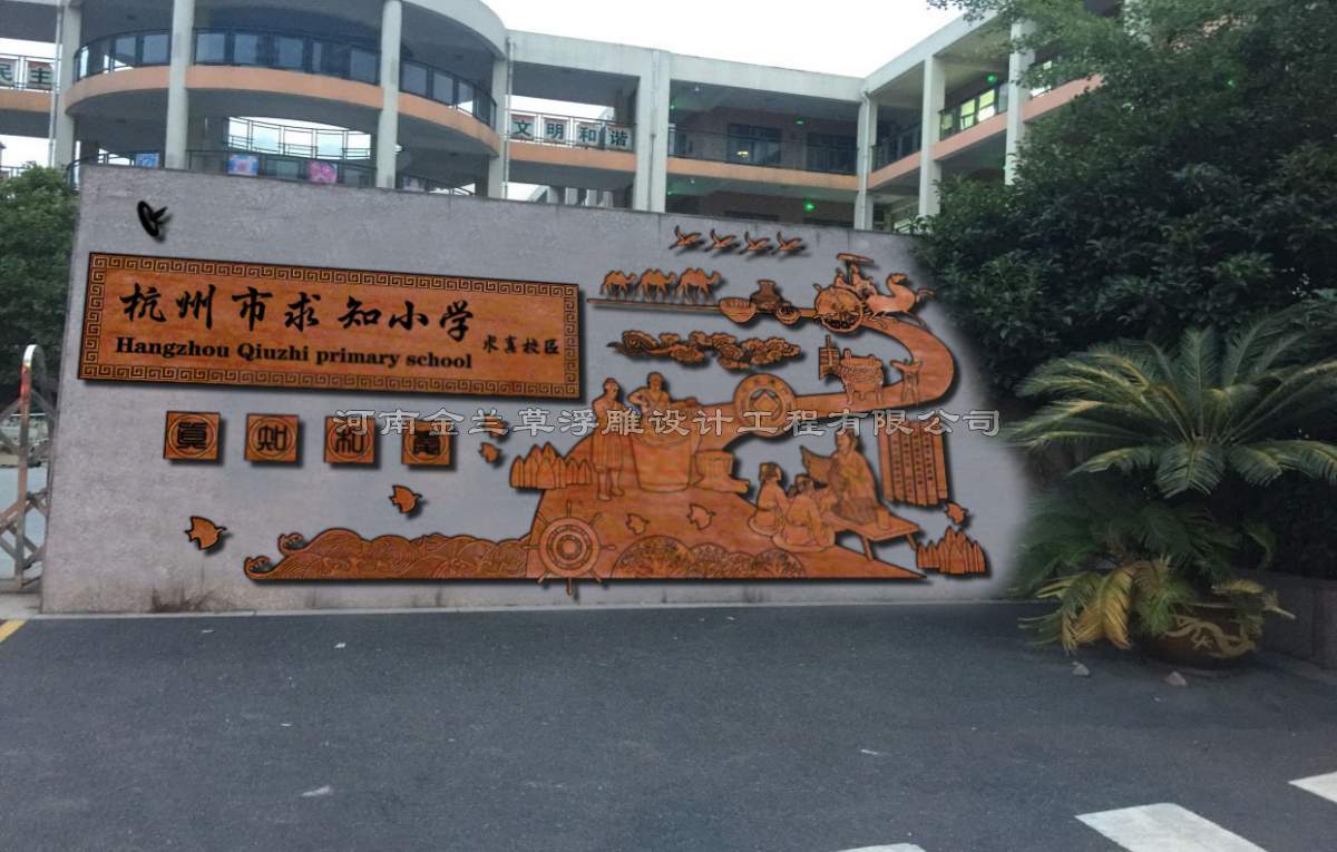每一次合作都是緣分,金蘭草浮雕的小編一直這么認為的,與杭州求知小學有項目合作得益于杭州某廣告公司的介紹,在初期與陳校長的溝通中,讓公司設計師感受到陳校長的認真、負責態度,也讓我們此項目的設計非常重視。