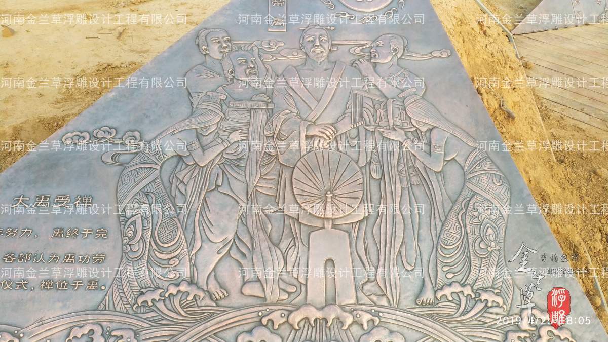 說到博物館浮雕定制,今天金蘭草浮雕小編帶大家欣賞本廠所做博物館浮雕——大禹受禪浮雕,浮雕因整體規(guī)劃需要,為三角形,但這并不影響到浮雕設(shè)計(jì)時對歷史文化事件的表現(xiàn)。大禹,中國傳知度很高的古代名人,他的故事遠(yuǎn)近流傳,很多故事被我們熟知,大禹治水有功,后舜帝將位傳于大禹,這段歷史畫面通過精彩的描繪表現(xiàn)出來。