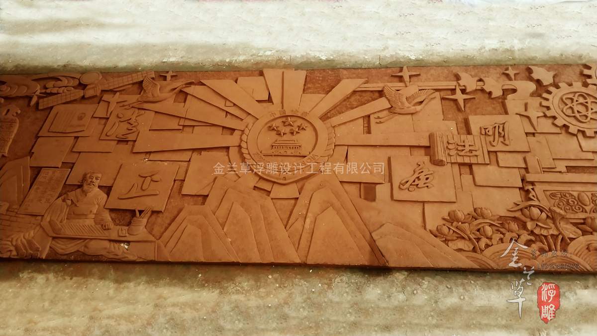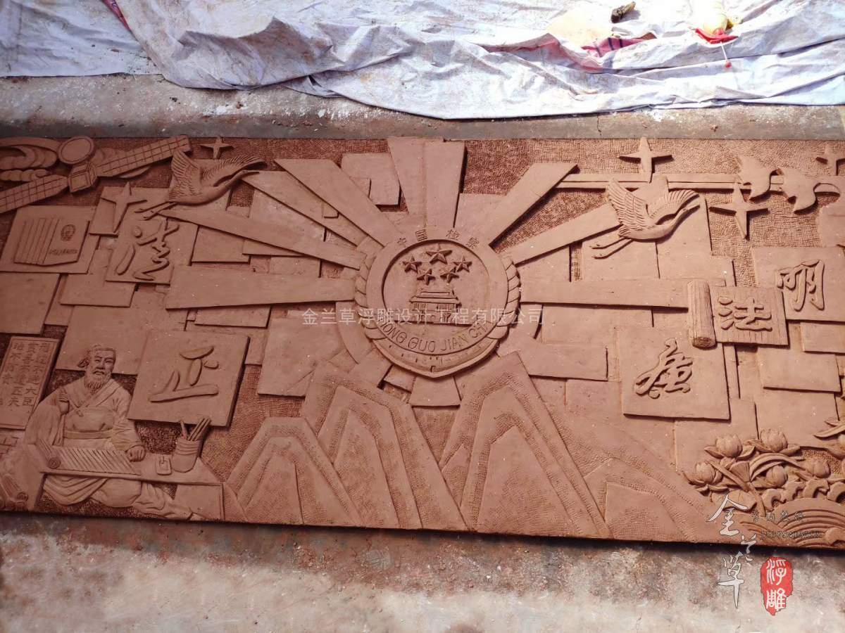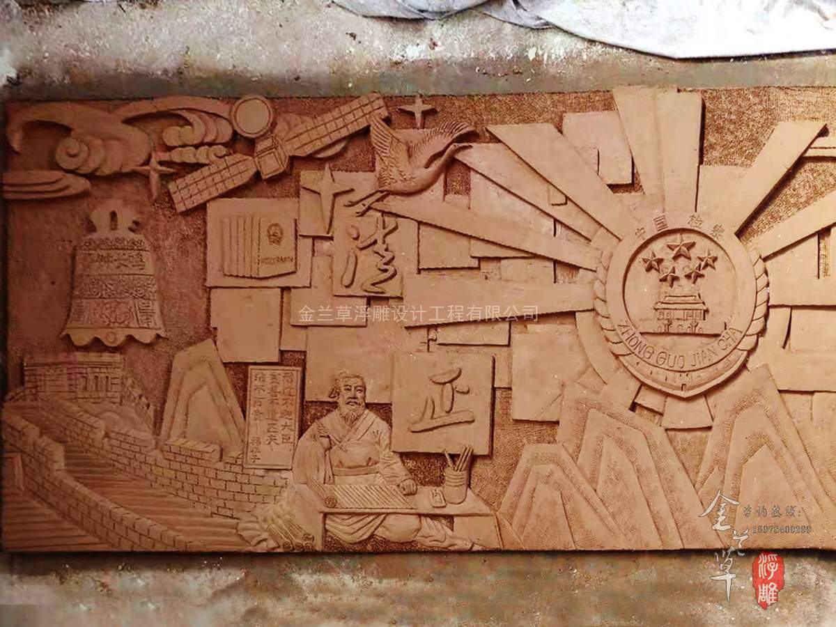 玻璃鋼浮雕如何定制?這個話題金蘭草浮雕在以前的文章中也多次的說過了,今天,就不在這里過多介紹。此玻璃鋼浮雕是為新疆某地市某檢察院所做,浮雕開始做泥塑,后期翻制玻璃鋼材質(zhì),最后做仿銅效果,因為路途遙遠(yuǎn),客戶為了節(jié)省成本,決定自己在當(dāng)?shù)毓腿诉M(jìn)行安裝,金蘭草浮雕的師傅們雖不大放心,但尊重客戶自己選擇,這里就要強調(diào)下玻璃鋼浮雕安裝的重要性。