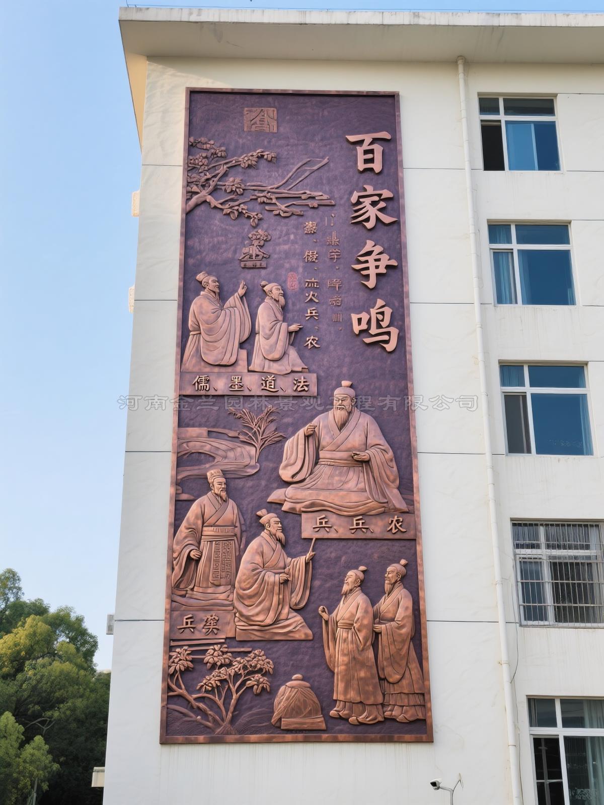 學校浮雕首先在一些重點學校流行,進而慢慢影響到周邊學校,這主要是因為名校校長去強校考察的機會更多,更容易吸取他校建設的精華,用來提升本校。金蘭草浮雕公司的小編明顯察覺到很多的名校都是比較重視校園文化建設的,都有一塊或者兩塊具有代表性的校園文化浮雕的。